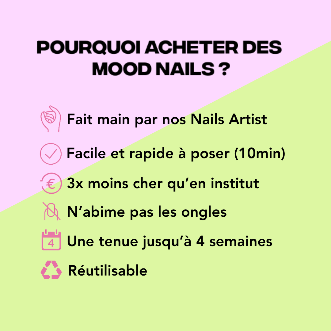 Oui ! Les Mood Nails sont une excellente solution si vos ongles sont courts ou rongés. Ils offrent une belle longueur et un rendu naturel, tout en protégeant vos ongles pendant leur repousse.